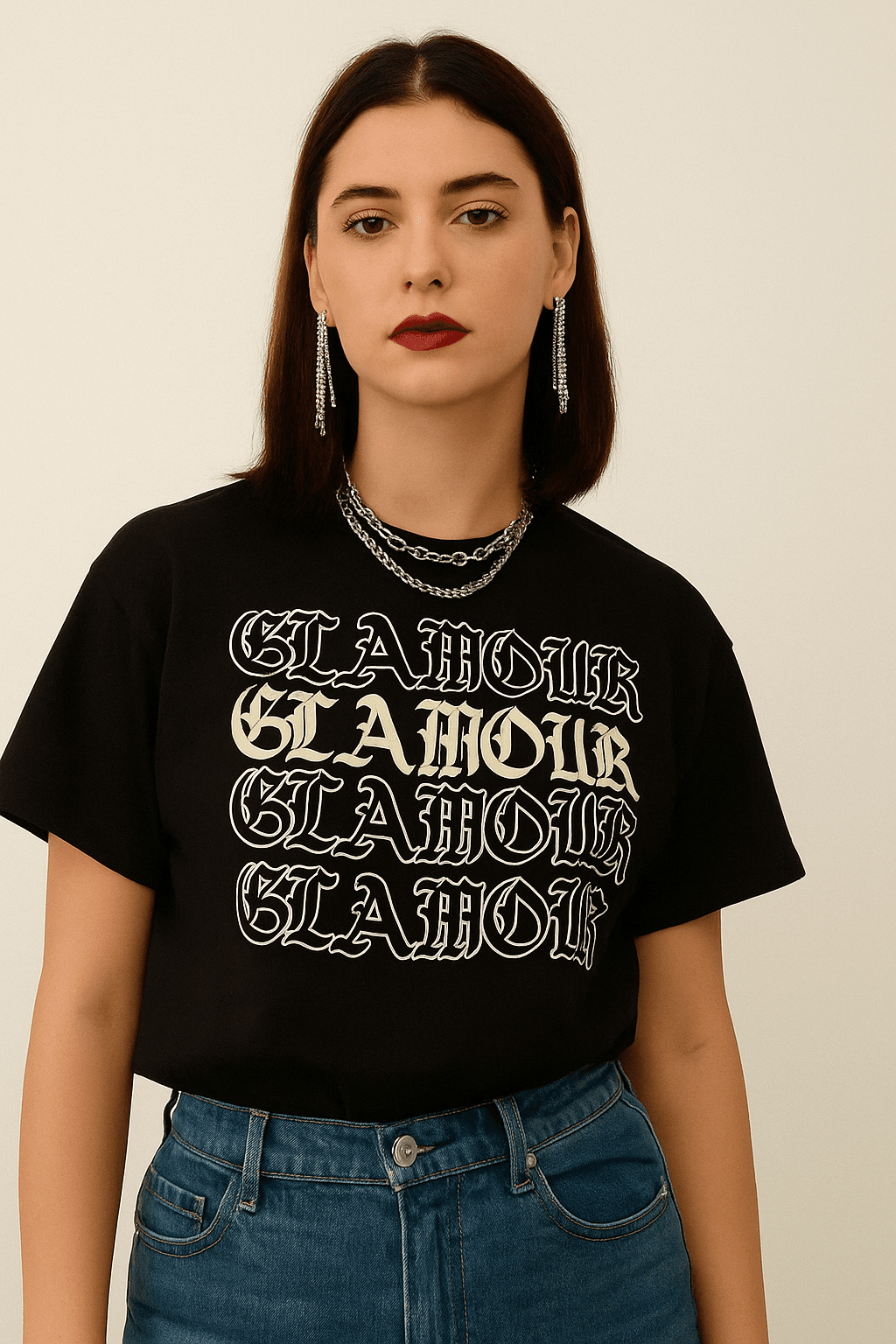 Perfecta para llevar con cuero, denim o cualquier prenda que refleje tu espíritu independiente. Esta camiseta pertenece a la línea Glamour y Rock, creada para mujeres intensas, libres y magnéticas. Con ella, cada outfit se convierte en una declaración de fuerza, actitud y autenticidad.