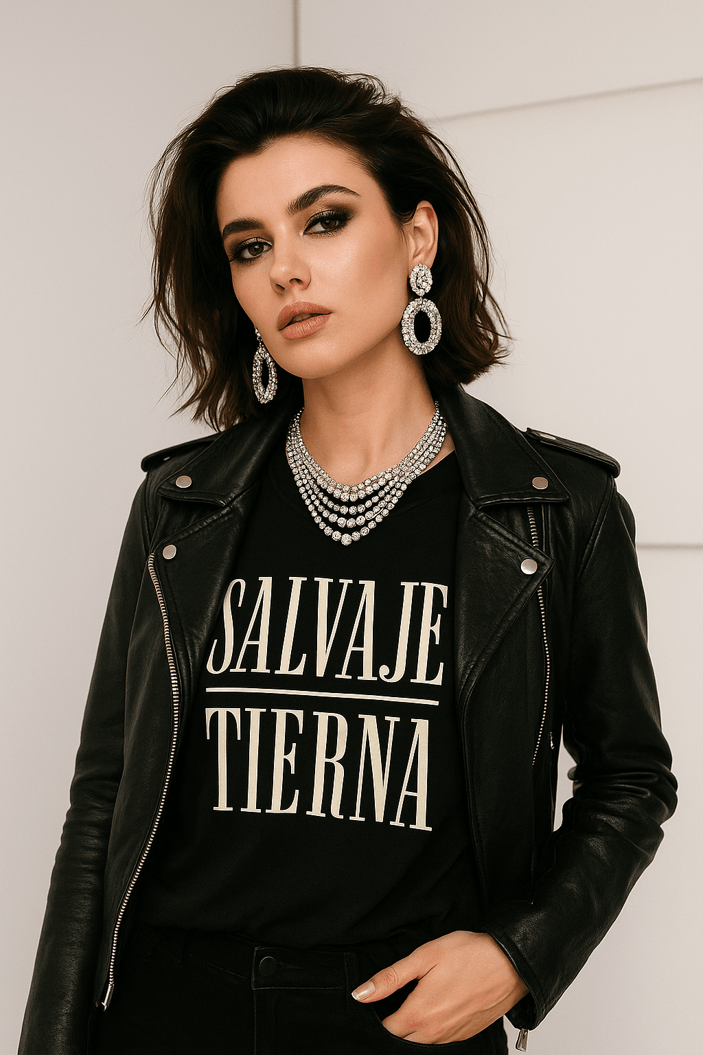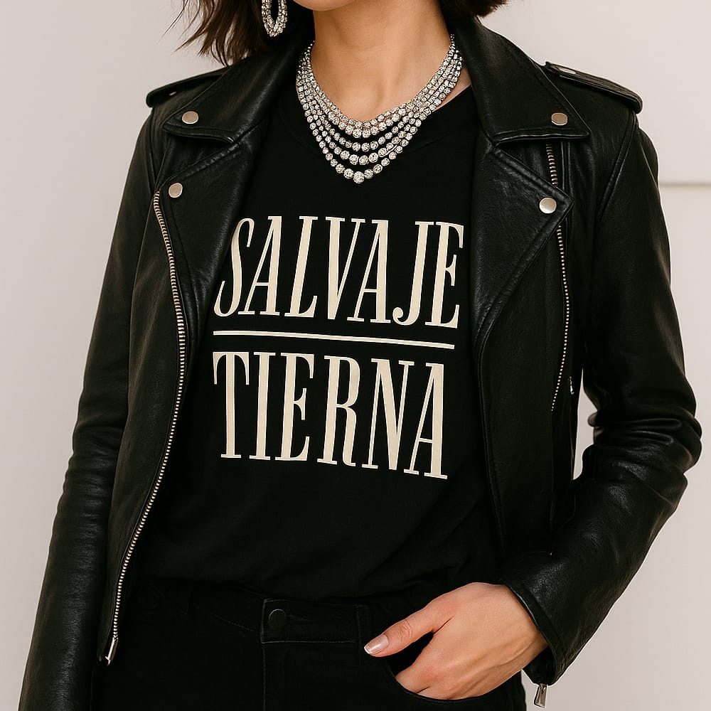 ‘Salvaje / Intensa’ combina minimalismo, elegancia y un toque rock poético. Es perfecta para quienes buscan ropa con significado, prendas que comuniquen actitud y autenticidad. La camiseta invita a mostrar fuerza y vulnerabilidad al mismo tiempo, dejando que tu personalidad brille en cada ocasión.